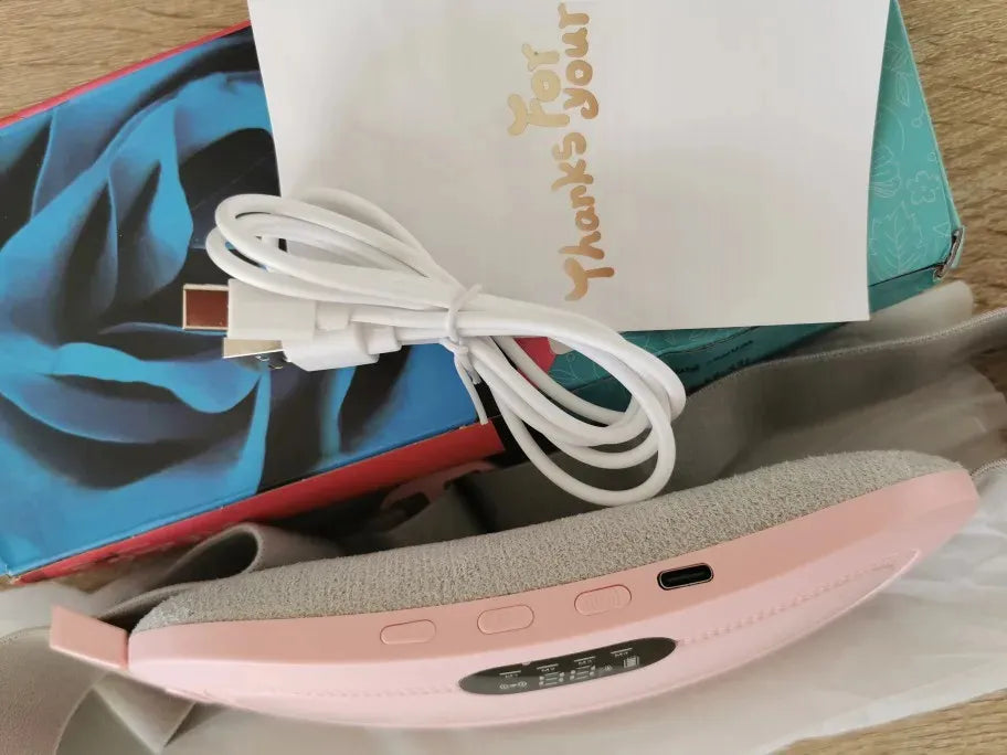 The belt uses advanced heating and vibration technology to relax tense muscles and improve blood circulation, providing immediate comfort for menstrual cramps.